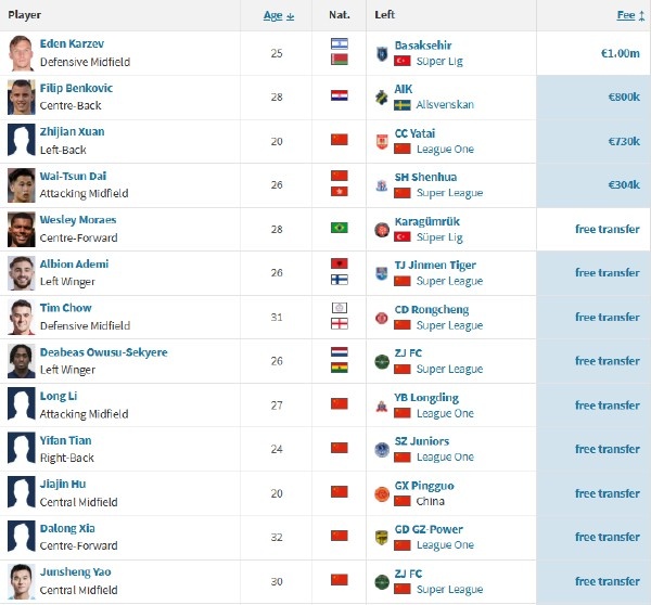 另外青岛海牛还更换了上赛季所有的5名外援,不过新援入队还是较为快速,早在1月时就已经敲定3人。