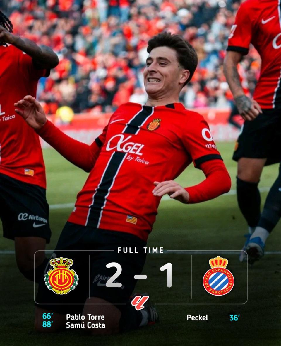 比赛进入最后阶段,马略卡的攻势越发猛烈。第88分钟,老将马斯卡雷尔送出关键直塞,科斯塔高速插上完成致命一击,主队完成2-1逆转。